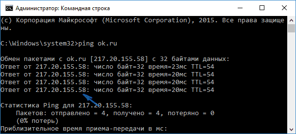 - Відкрийте командний рядок і введіть “ping_адрес_сайта” після чого натисніть Enter. Запишіть IP-адреси, з якими ведеться обмін пакетами.