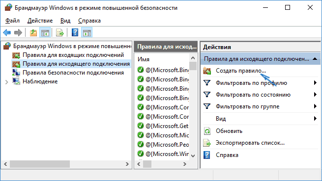 - Виберіть пункт «Правила для вихідного підключення» і натисніть «Створити правило».