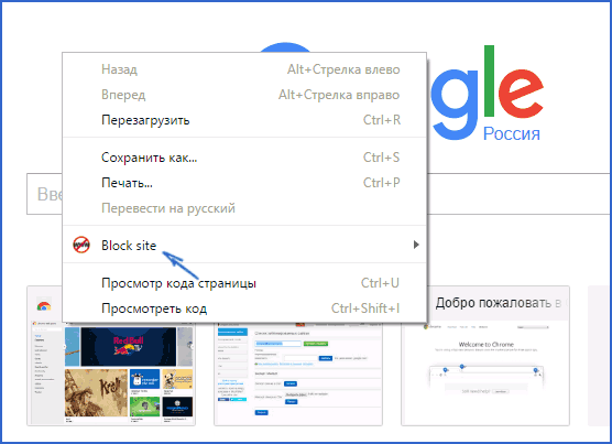 Тут розглянемо, як заблокувати сайт в браузері Google Chrome, хоча цей спосіб підійде і для інших браузерів з підтримкою розширень. У магазині Chrome для цієї мети є спеціальне розширення Block Site.